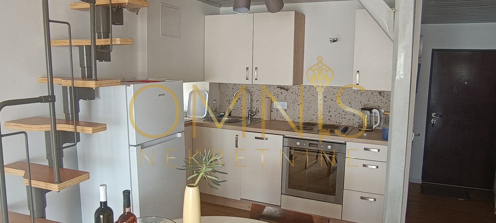 The space exudes Mediterranean charm and warmth — natural stone, high ceilings, and a modern gallery give the apartment a unique character. The apartment is air-conditioned, equipped with new installations, PVC joinery, and fully furnished, ready for move-in or tourist rental.