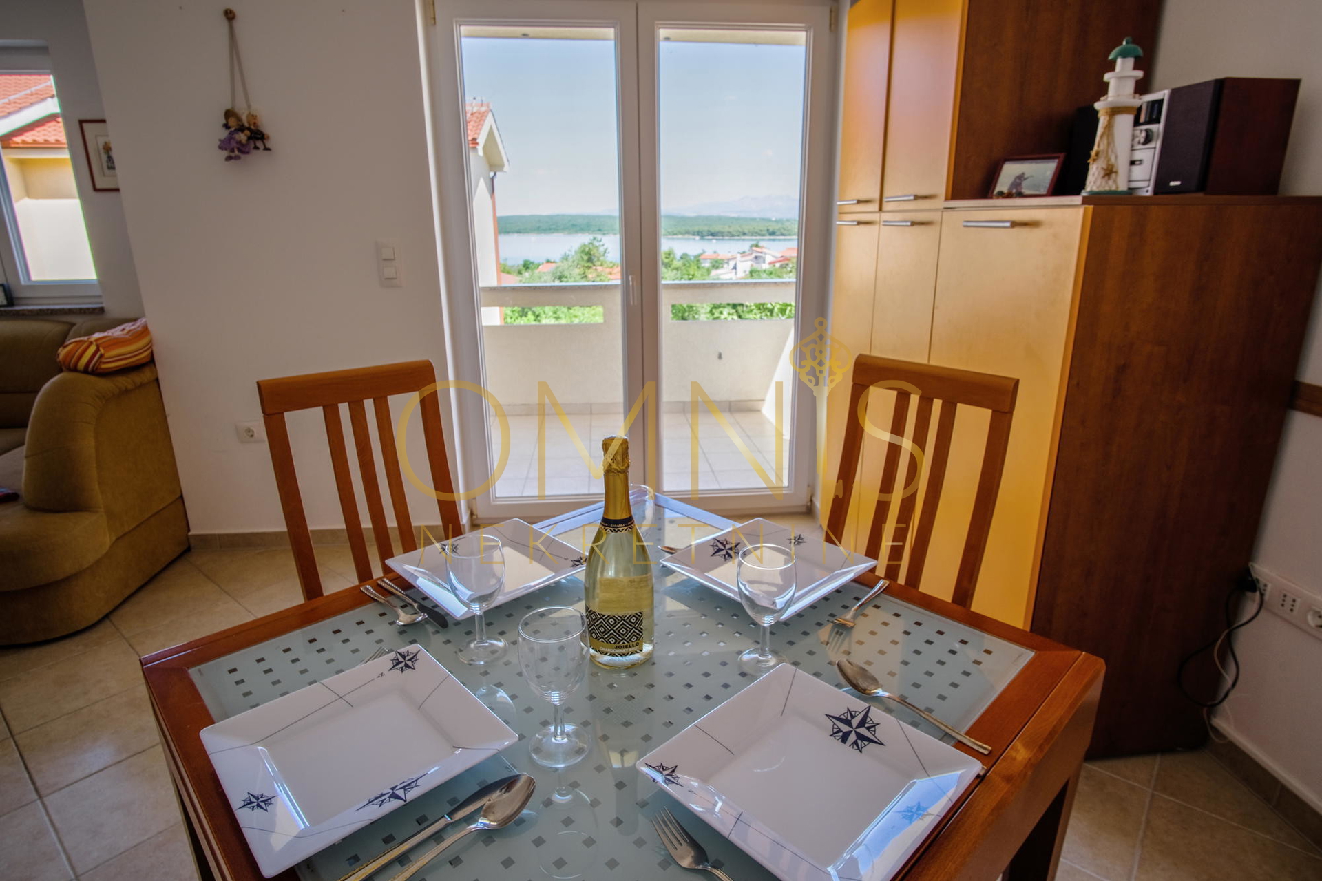 Na prodaju je predivan, potpuno namješten apartman površine 60 m2 s otvorenim pogledom na more, smješten na mirnoj lokaciji u Klimnu na otoku Krku, svega 300 metara od plaže.