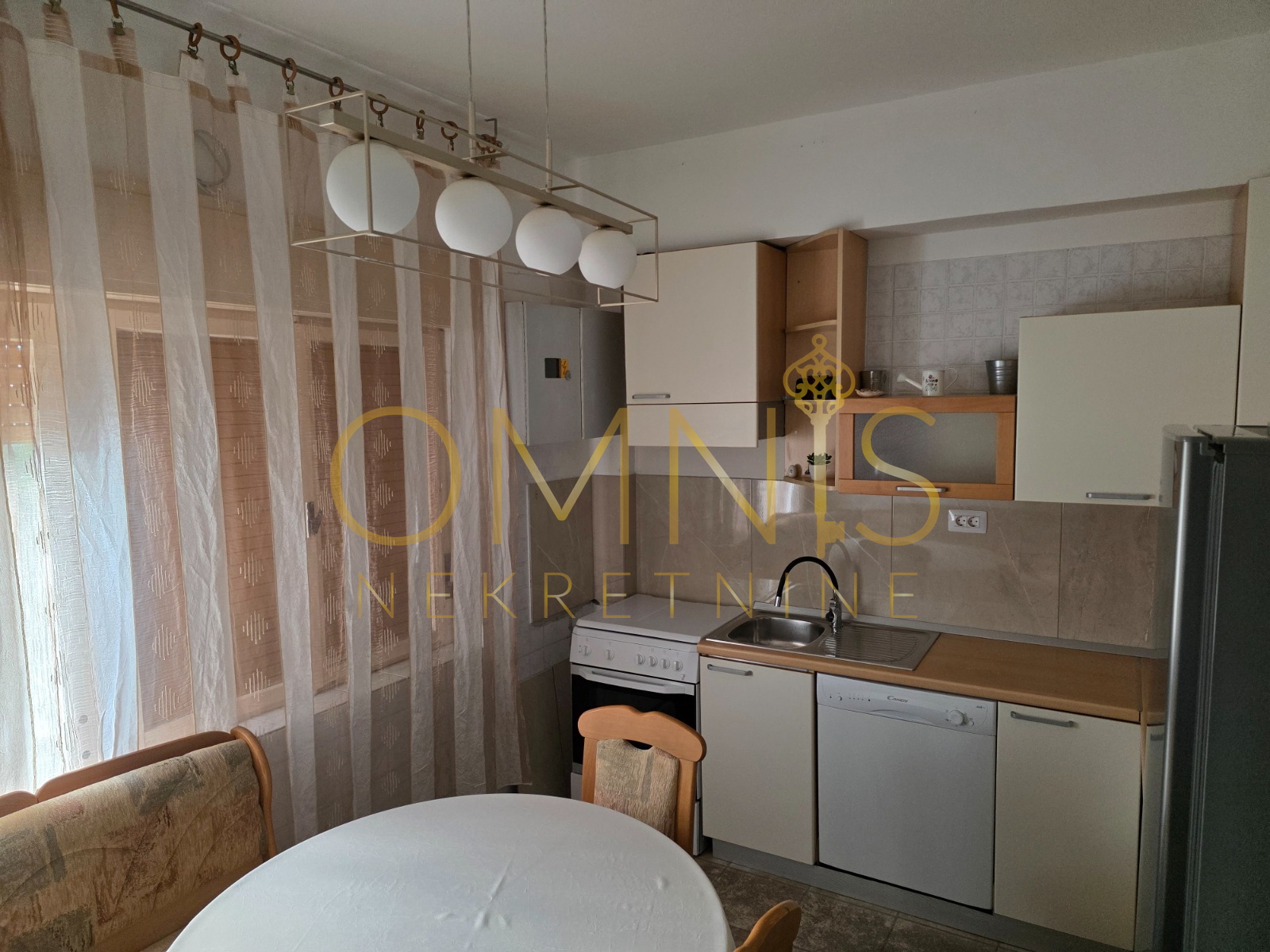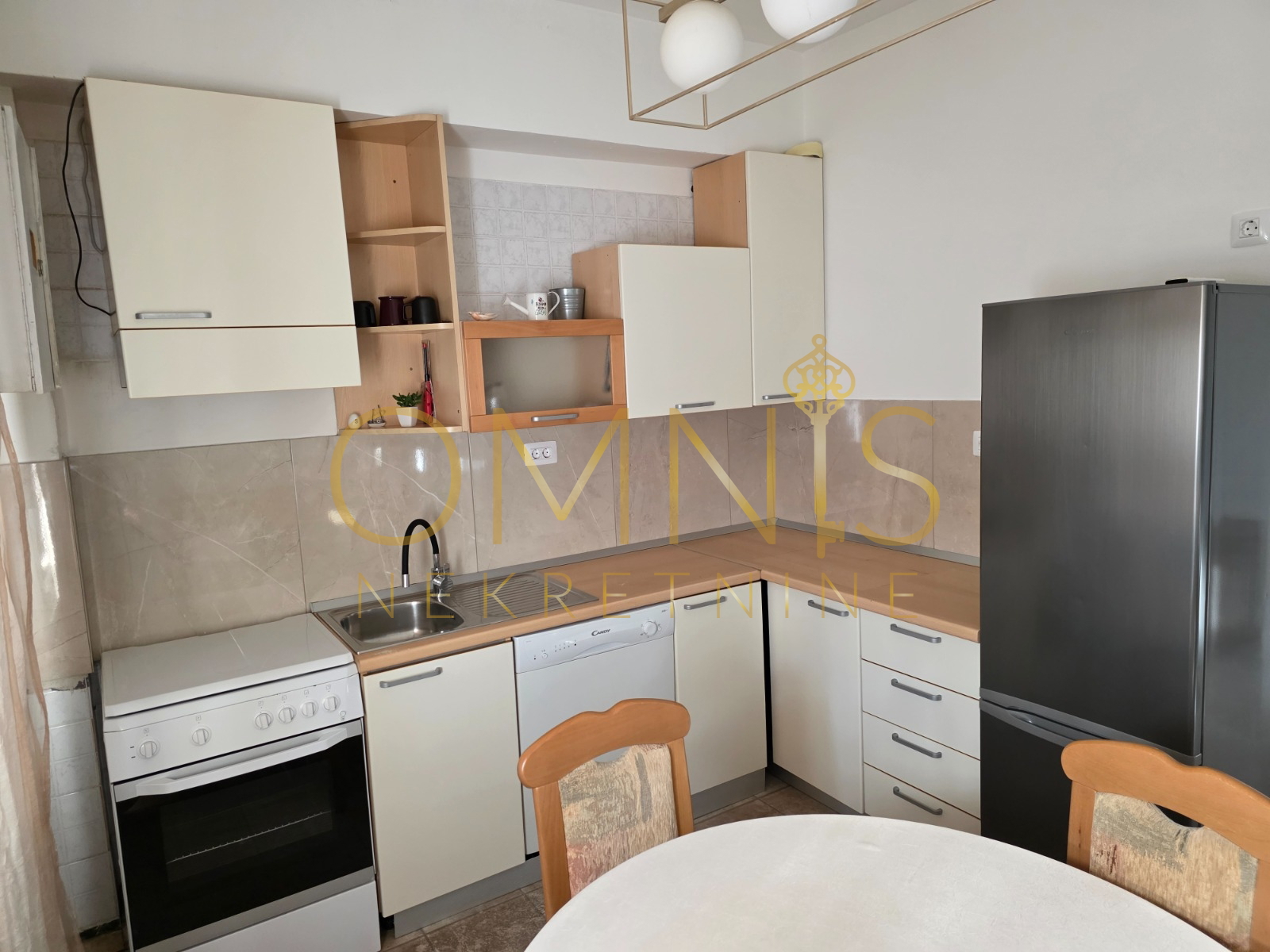 Sastoji se od kuhinje s blagovaonom, odvojene spavaće sobe, moderne kupaonice te dodatne sobe koja može poslužiti kao dnevni boravak ili radni prostor. Grijanje je na struju putem klima uređaja, a cijeli prostor je uredan i svijetao.