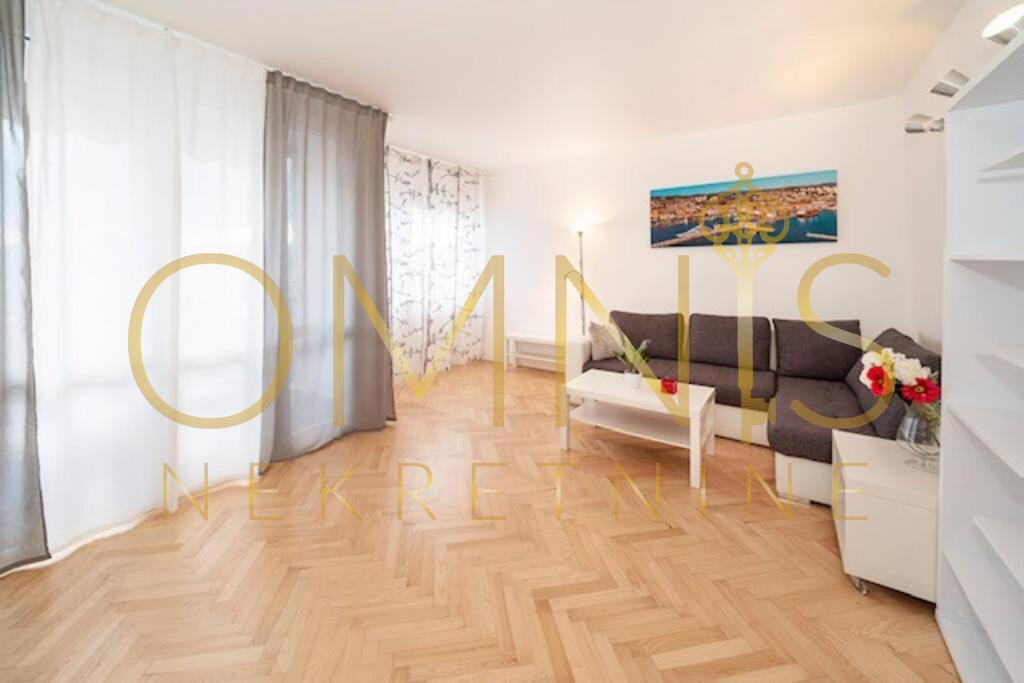 Iznajmljuje se prostran i vrlo svijetao stan na Belvederu, smješten na 8. katu nebodera s liftom, idealan za dugoročni najam. Stan površine 62 m2 sastoji se od velikog dnevnog boravka, jedne veće spavaće sobe i dodatne manje sobe te zasebne kuhinje s blagovaonicom koja ima izlaz na lođu. Prostor je uredan, funkcionalan i dobro održavan, a velike staklene površine osiguravaju puno prirodnog svjetla tijekom cijelog dana.